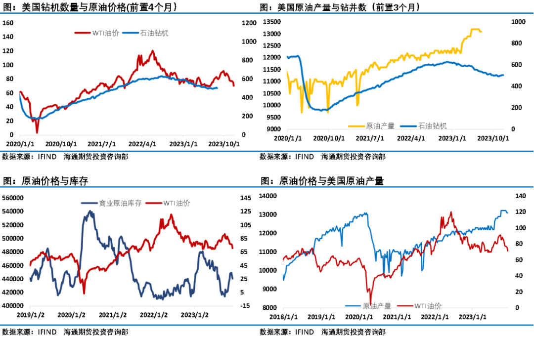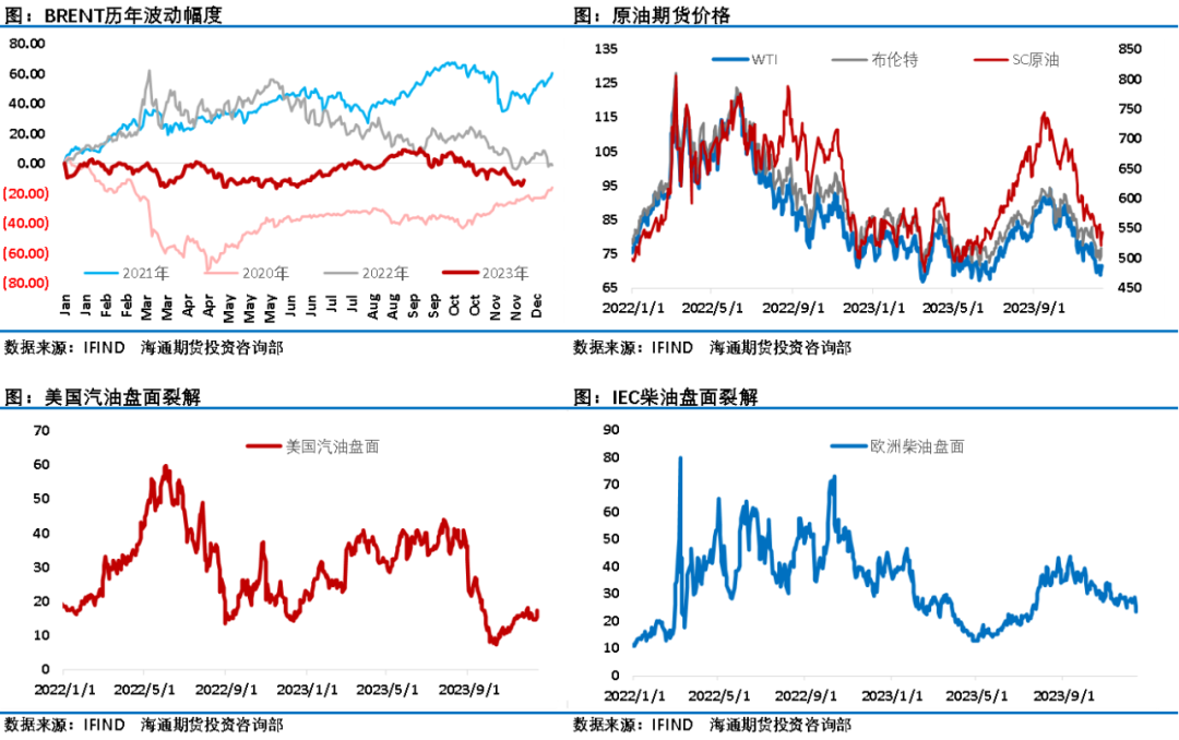 通过三大机构的月报可以看出,明年需求增长预测会较2023年有明显回落,这需要欧佩克+减产来平衡市场。国际能源署强调欧佩克+减产行动延长至2024年第一季度的措施对支撑油价几乎没有起到任何作用。产量持续增长和需求增长放缓将使关键生产国保卫市场份额和维持高油价的努力变得更加复杂。EIA认为,如果非经合组织国家液体燃料消费的预期增长未能实现,全球油价可能会低于假设。