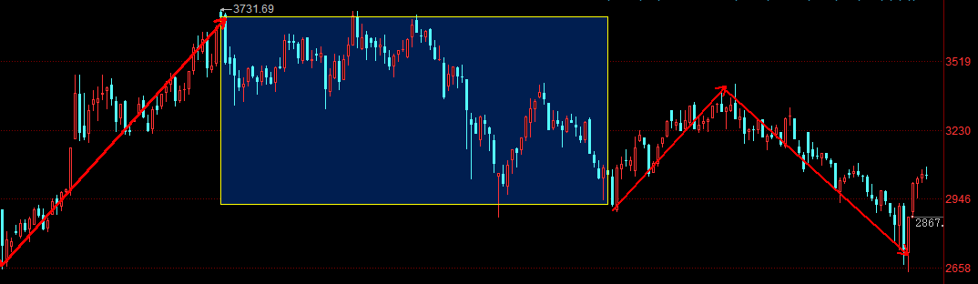 中期来看,大盘现处于中期震荡后的上涨行情。短期来看,大盘快速调整进入空头市场,周线展开调整,短期控仓观望为主。